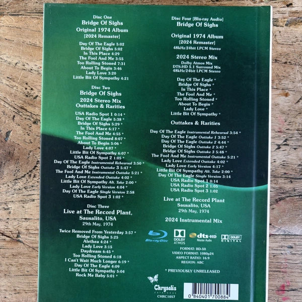 Bijzonderheden: In nieuwstaat verkerende 50th Anniversary boxset van het klassieke album Bridge Of Sighs uit 1974. Deze editie bevat 3 cd’s met de 2024 remaster van het originele album, een nieuwe stereo remix met extra en langere versies, plus een cd met een liveoptreden uit 1974. Inclusief Blu-ray met Dolby Atmos en 5.1 mixen, extra outtakes en een 24-pagina boekje met interviews en foto’s.